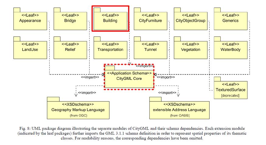 The data model of CityGML comprises different thematic modules. In addition to the Core module, only the Building module is processed for the transformation of the 3D city model.
